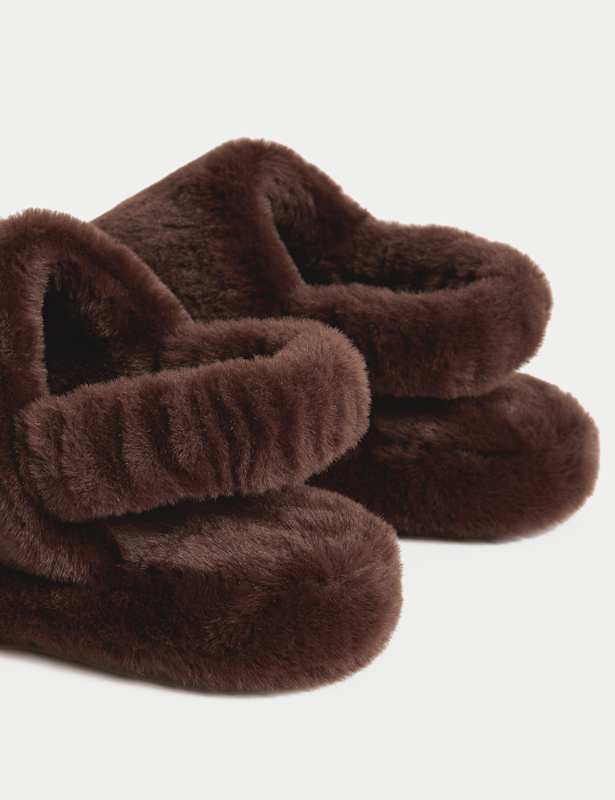 These slippers are covered in faux fur for a super cosy feel. They have a flat, open-toe design with a slingback strap to keep them in place. M&S Collection: easy-to-wear wardrobe staples that combine classic and contemporary styles.