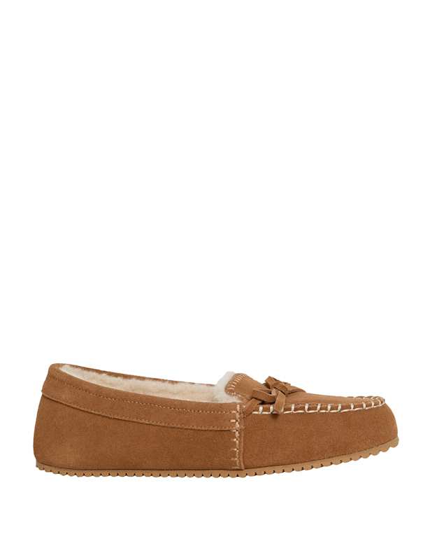 These suede moccasin slippers are a timeless choice for lounging around the house. The slip-on design features a cosy faux fur lining and a flat sole with added grips for extra traction. Stitch detailing on the front and a neat bow add the finishing touches.M&S Collection: easy-to-wear wardrobe staples that combine classic and contemporary styles.