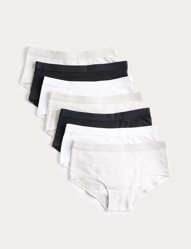 Refresh their essentials with these cotton-rich shorts. Made with added stretch for a flexible fit. StayNew™ technology for longer-lasting colour and finish, plus Stay Soft for a smooth feel against skin. The pack of seven contains three grey, two black and two white pairs.