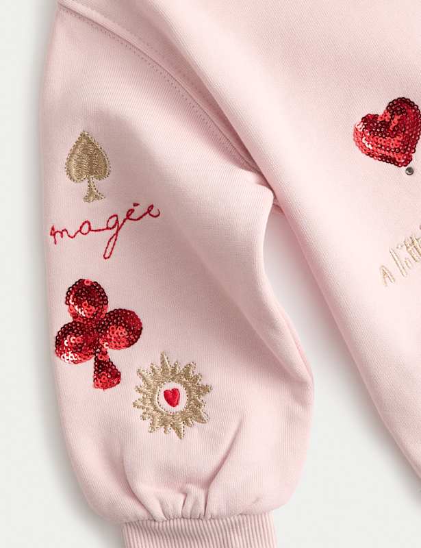 This cotton-rich sweatshirt is a casual style with a touch of sparkle. Comfy regular fit, with a round neck and long sleeves. The front features sequinned shapes such as hearts and cherries and slogans including 'pocket full of stars'.