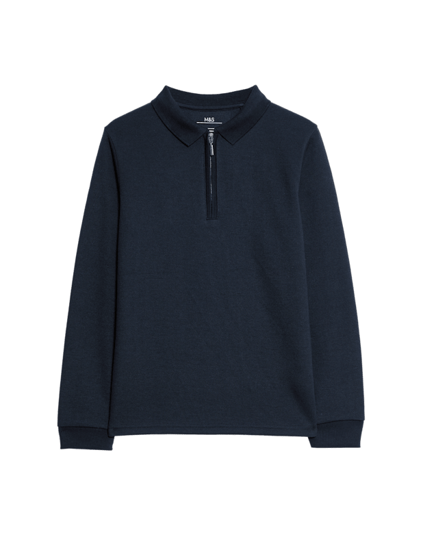 Cotton Blend Pique Half Zip Polo Shirt (6-16 Yrs)