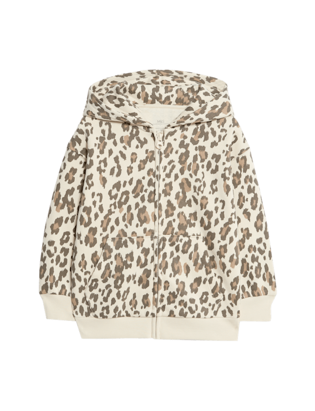 Keep them cosy in this cotton-rich hoodie, featuring a fun leopard print. Regular fit, with a zip-through front for easy layering. Complete with handy side-entry pockets.
