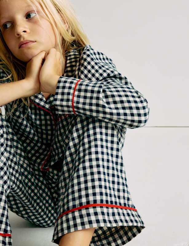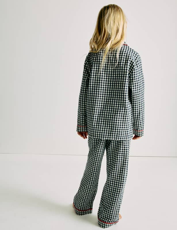 These pure cotton gingham pyjamas are perfect for the festive season. Regular fit. The top features a neat revere collar and a single chest pocket, while the bottoms have a comfy elasticated waist.