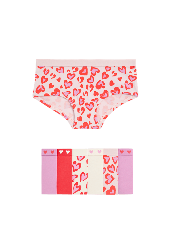 These pretty, cotton-rich shorts are made with added stretch for extra comfort. Seven pairs in the pack, three with a heart-shaped leopard print, and four with hearts at the waistband. Our StayNew™ finish keeps them looking like new for longer.