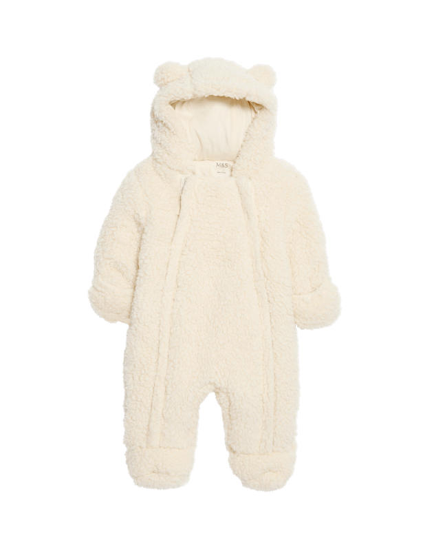 Keep your little one cosy in this adorable pramsuit. It's crafted from soft borg fabric with a hood and a zip fastening to keep them snug. Ears on the hood give a cute finishing touch.