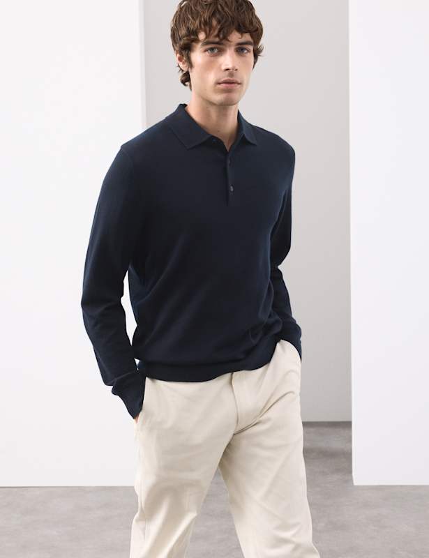 This polo shirt from our Autograph collection is a timeless wardrobe staple. It's made from pure extra fine merino wool for a soft and luxurious feel. The button fastening and long sleeves make it perfect for layering in the colder months. Autograph: premium investment pieces featuring contemporary cuts and refined finishing touches.