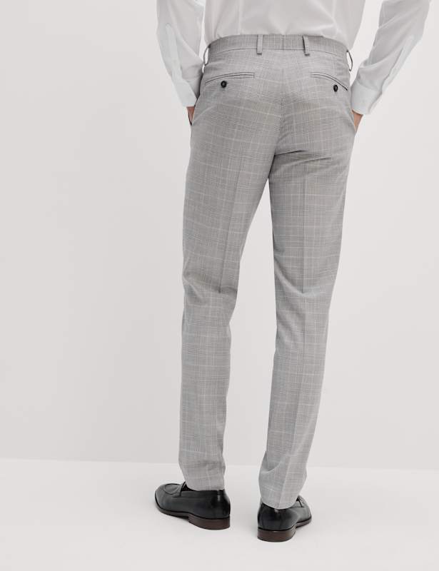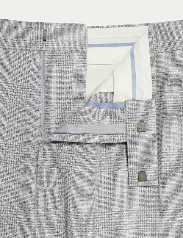 These suit trousers are made from a linen-look fabric with a Prince of Wales check for a timeless look. They're cut to a sleek slim fit, with a modern flat front. Added stretch ensures easy comfort. They fasten with a neat hook bar and zip. M&S Collection: easy-to-wear wardrobe staples that combine classic and contemporary styles.