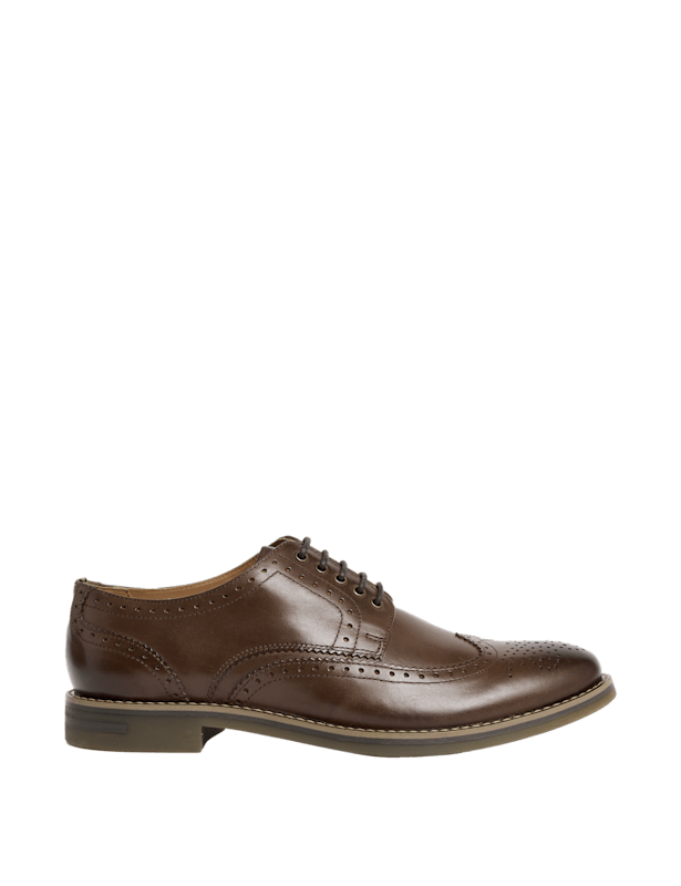 Made from supple genuine leather, these brogue shoes balance classic style with adaptable appeal. Cut to a regular fit with a secure lace-up fastening, they deliver reliable comfort throughout the day. Traditional punch-hole detailing and intricate wingtip stitching define their classic brogue character, while hard-wearing soles ensure lasting durability for this high-quality footwear perfect for casual occasions.M&S Collection: easy-to-wear wardrobe staples that combine classic and contemporary styles.