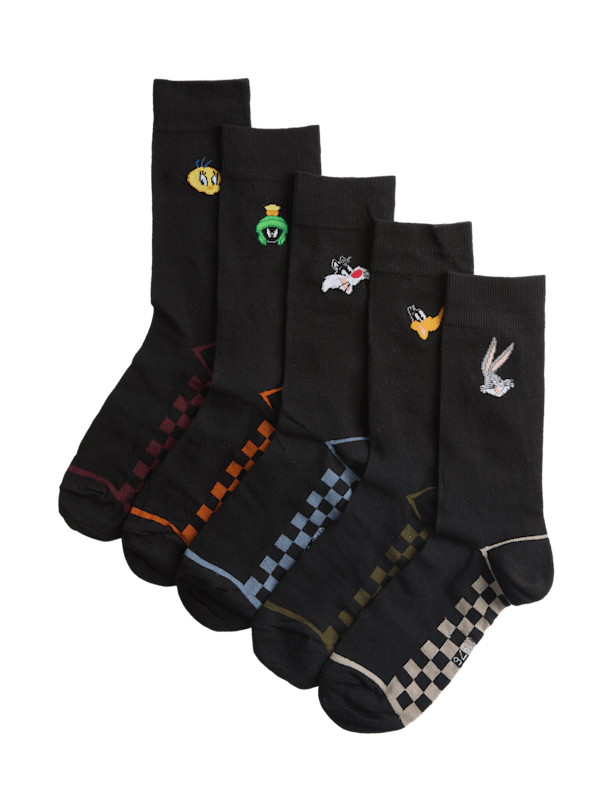 These breathable cotton-rich (and cartoon-rich) Looney Tunes™ socks will make a fun addition to your essentials selection The soft fabric has added stretch for extra comfort. Designs showcase characters from the best-known shows. That's all, folks! M&S Collection: easy-to-wear wardrobe staples that combine classic and contemporary styles.