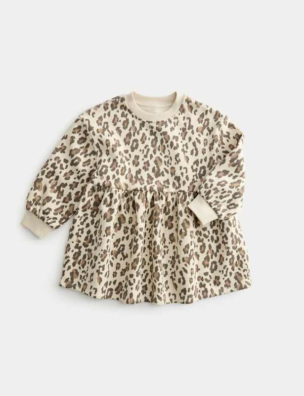 Cotton Rich Leopard Print Sweatshirt Dress (2-8 Yrs)
