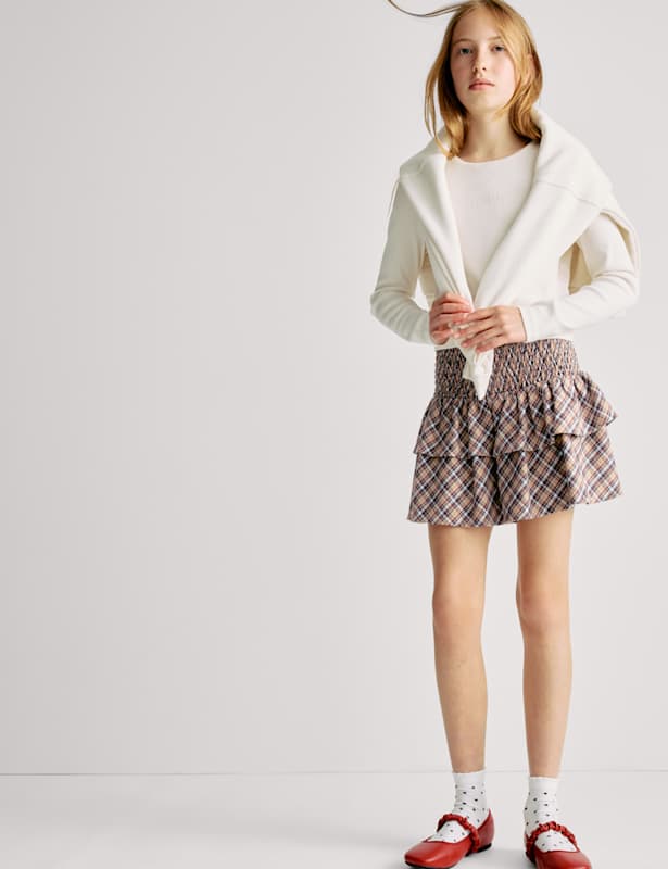 This check skirt is crafted from pure cotton for a soft, breathable feel. It's designed in a regular fit, with a comfy elasticated waist. The playful rara style features ruffled tiers for a fun, floaty feel.
