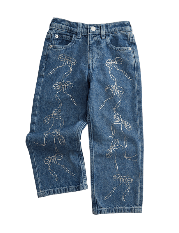 Pure Cotton Denim Diamanté Bow Jeans (2-8 Yrs)