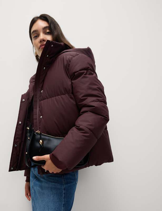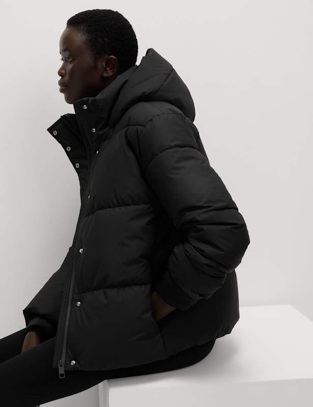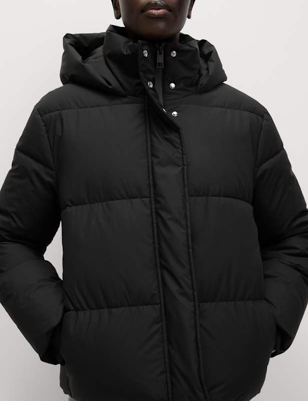 This rubber duvet jacket is a must-have for cold days. It's designed in a regular fit, with a cosy hooded funnel neck. The Stormwear™ piece is made with an innovative finish to protect from light rain showers and lightweight Thermowarmth™ padding to help keep you warm and dry. M&S Collection: easy-to-wear wardrobe staples that combine classic and contemporary styles.