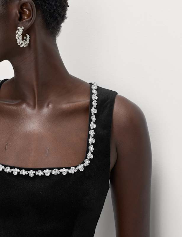 Go through the party season in glamorous style courtesy of this velvet sleeveless top. It's designed in a flattering, fitted shape, with a peplum hem and added stretch for comfortable wear. The stylish square neckline is adorned with sparkling embellishments for an eye-catching look. A neat back zip fastening completes the statement design.M&S Collection: easy-to-wear wardrobe staples that combine classic and contemporary styles.