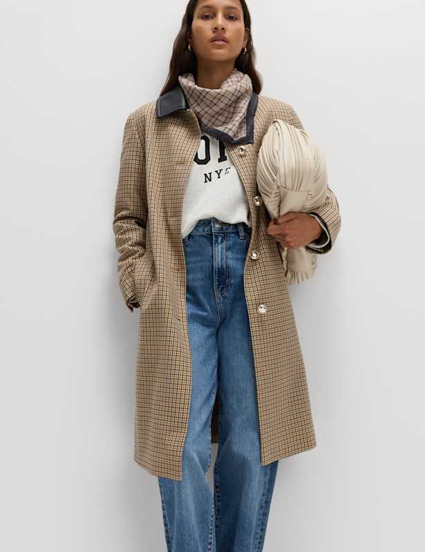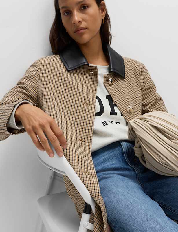Add a timeless piece to your outerwear wardrobe with this checked car coat. It's cut in a regular fit with added stretch for comfort. The faux leather collar and shiny button fastening provide an authentic look. Pockets are handy for your bits and bobs. M&S Collection: easy-to-wear wardrobe staples that combine classic and contemporary styles.