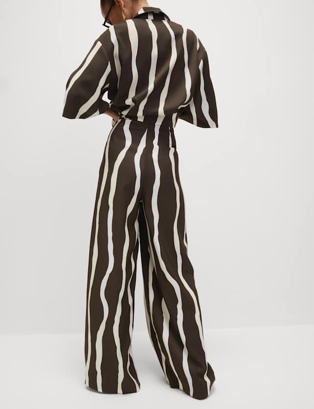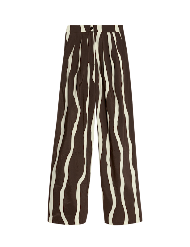These printed trousers make a striking style statement. For a modern silhouette, they have a flattering wide-leg fit and a high-rise waist that fastens with a neat button and zip. Handy side pockets complete the look. M&S Collection: easy-to-wear wardrobe staples that combine classic and contemporary styles.