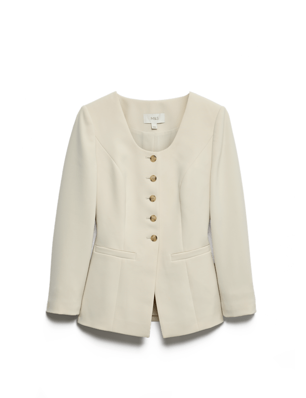 This timeless jacket is a versatile addition to your wardrobe. It's cut in a regular fit and features a cropped hem for a contemporary look. Added stretch in the fabric ensures extra comfort. It's finished with a round neckline and a neat button fastening. M&S Collection: easy-to-wear wardrobe staples that combine classic and contemporary styles.