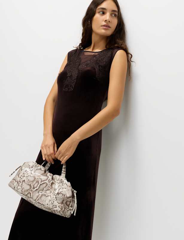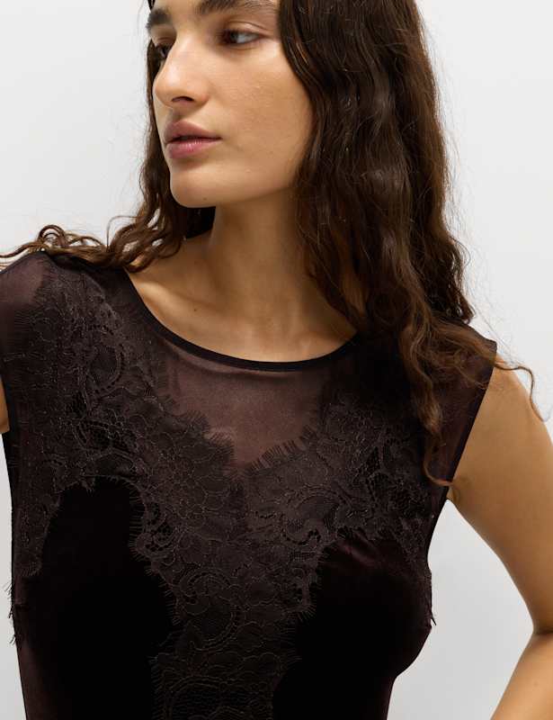 Velvet Sheer Lace Midaxi Column Dress