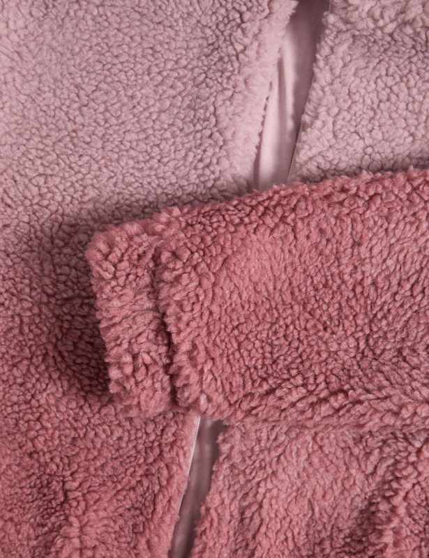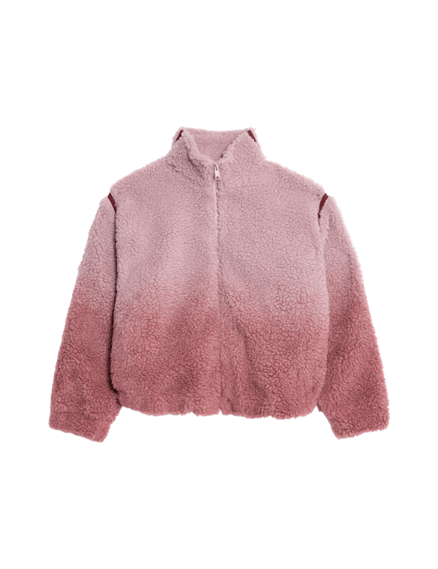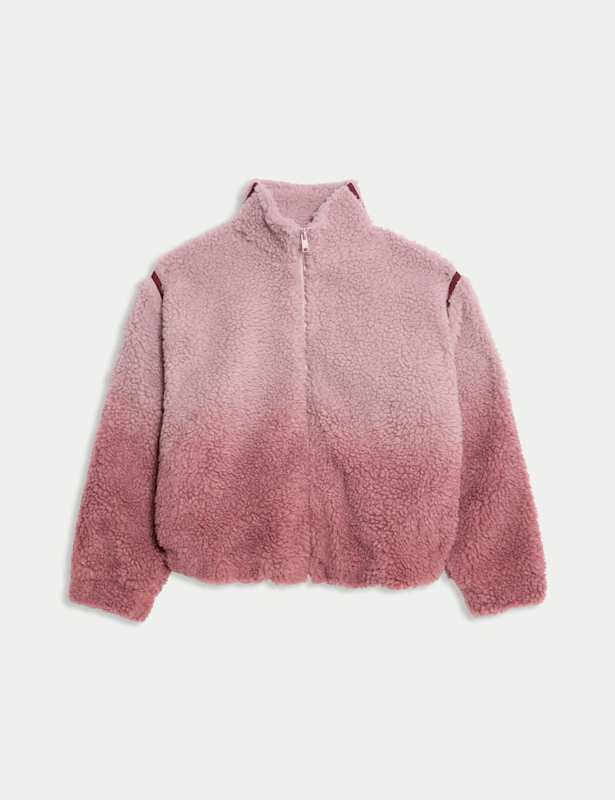 This borg fleecy jacket is great for cosying up in on colder days. It's designed in an oversized fit, with a zip-up front and a high neck. Contrast tape trims add eye-catching detail around the collar and shoulders, while an all-over subtle ombré pattern provides an on-trend finish.