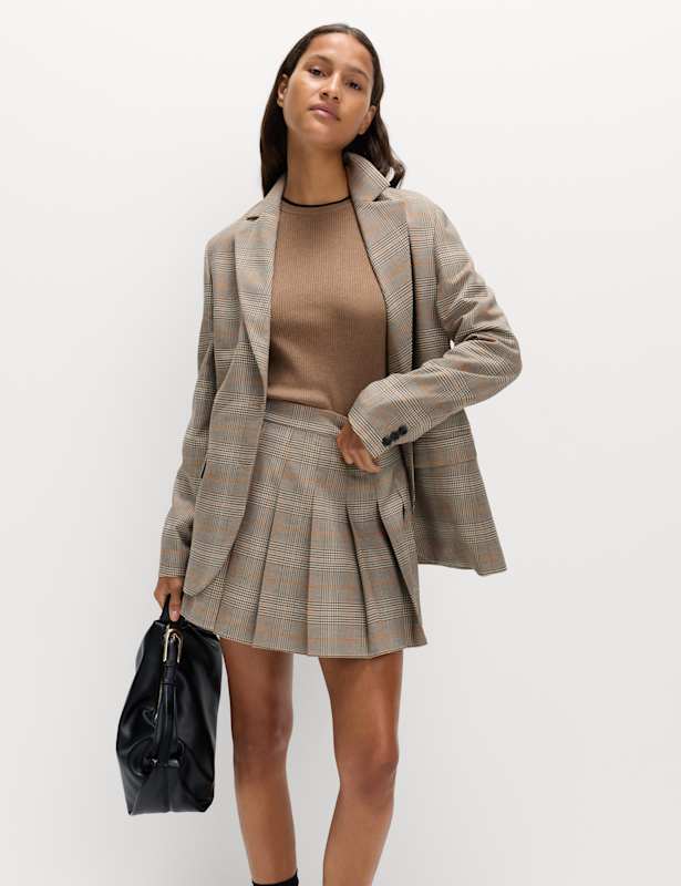 This single-breasted checked blazer is a smart choice for work or weekends. Relaxed fit with a double-button fastening and buttoned cuffs. Designed with two convenient flap pockets. Added stretch in the fabric, plus a back split, make for easy movement. M&S Collection: easy-to-wear wardrobe staples that combine classic and contemporary styles.