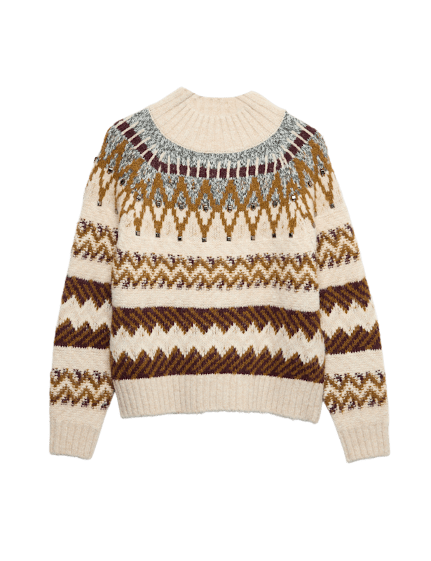 Experience the cosiness of this stylish jumper from our Per Una collection. It's made with wool for a soft and warm feel, and embellished with angular beads that catch the light. Regular fit, with a funnel neck and ribbed trims to keep out chills. The Fair Isle pattern gives a traditional look, while the tweed yarn provides texture. Per Una: stylish designs crafted with carefully considered details and feminine flourishes.