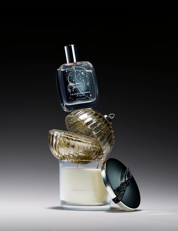Create an inviting atmosphere in your home with our Frankincense & Myrrh room spray. Warm frankincense blends with earthy myrrh, along with notes including orange, cinnamon, clove and vanilla. This seasonal scent is housed in a beautifully decorated glass bottle.