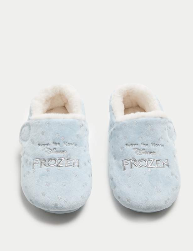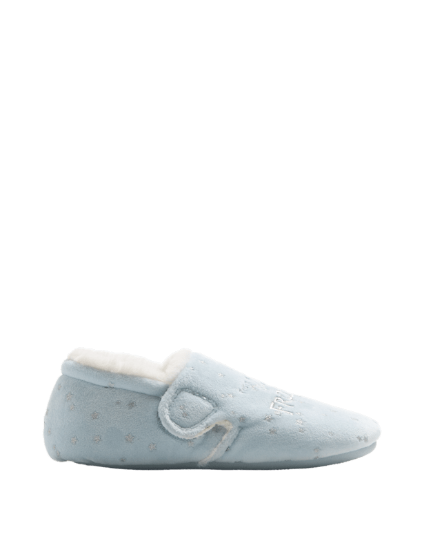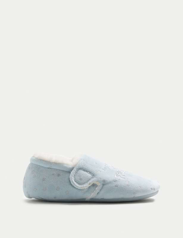 These Disney Frozen™ slippers are a perfect choice for fans of the film. They're made with riptape for easy fastening. The 'Frozen' logo is embroidered in sparkling thread on the soft velvety upper, alongside metallic stars. A fluffy lining inside ensures cosy toes.