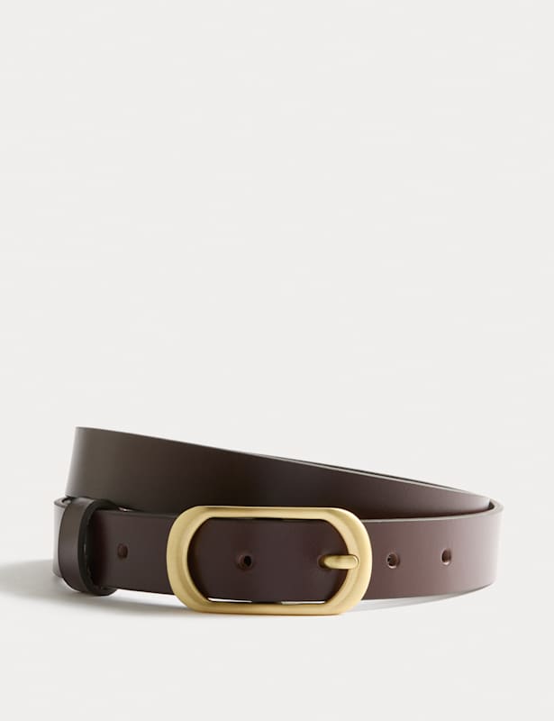 This leather belt is ideal for adding a touch of sophistication to your jeans. It's designed with an oval metal buckle in a brushed finish for a timeless look. M&S Collection: easy-to-wear wardrobe staples that combine classic and contemporary styles.