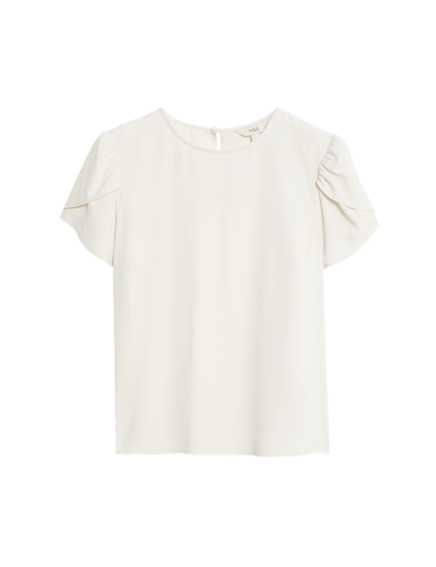 Add a touch of volume to your outfits with this stylish top. It's cut in a regular fit, with a round neckline and airy, split short sleeves that have a puffed shape for a statement look. A back button fastening adds a neat finish. M&S Collection: easy-to-wear wardrobe staples that combine classic and contemporary styles.