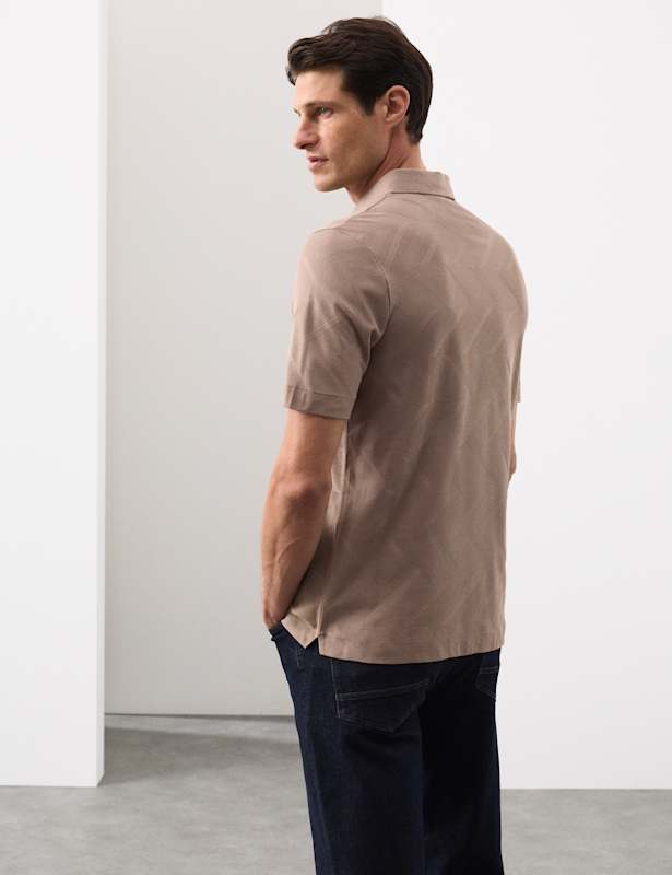 Add a touch of luxury to your casual wardrobe with this pure cotton polo shirt from our Autograph collection. It's made to a regular fit and features a smart collared neck and a button fastening. The geometric chevron pattern is complemented by a textured finish for added visual appeal. Autograph: premium investment pieces featuring contemporary cuts and refined finishing touches.