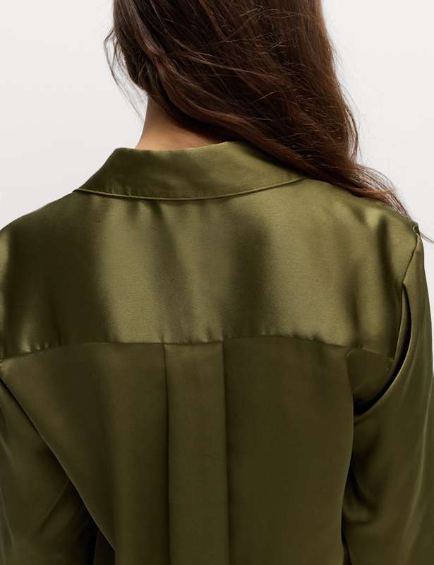 This shirt is crafted from sumptuously smooth satin for a luxurious feel. It's designed in a regular fit, with a smart collared V-neck and a button-through front. The long sleeves finish in neat cuffs. M&S Collection: easy-to-wear wardrobe staples that combine classic and contemporary styles.
