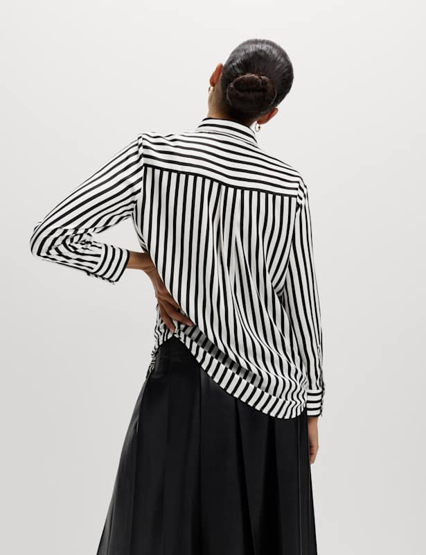 A sumptuous satin finish makes this shirt a luxurious addition to an outfit. It's designed in a regular fit, with a collared neckline and neat button-through front. A standout striped pattern and long cuffed sleeves add to the smart style. M&S Collection: easy-to-wear wardrobe staples that combine classic and contemporary styles.